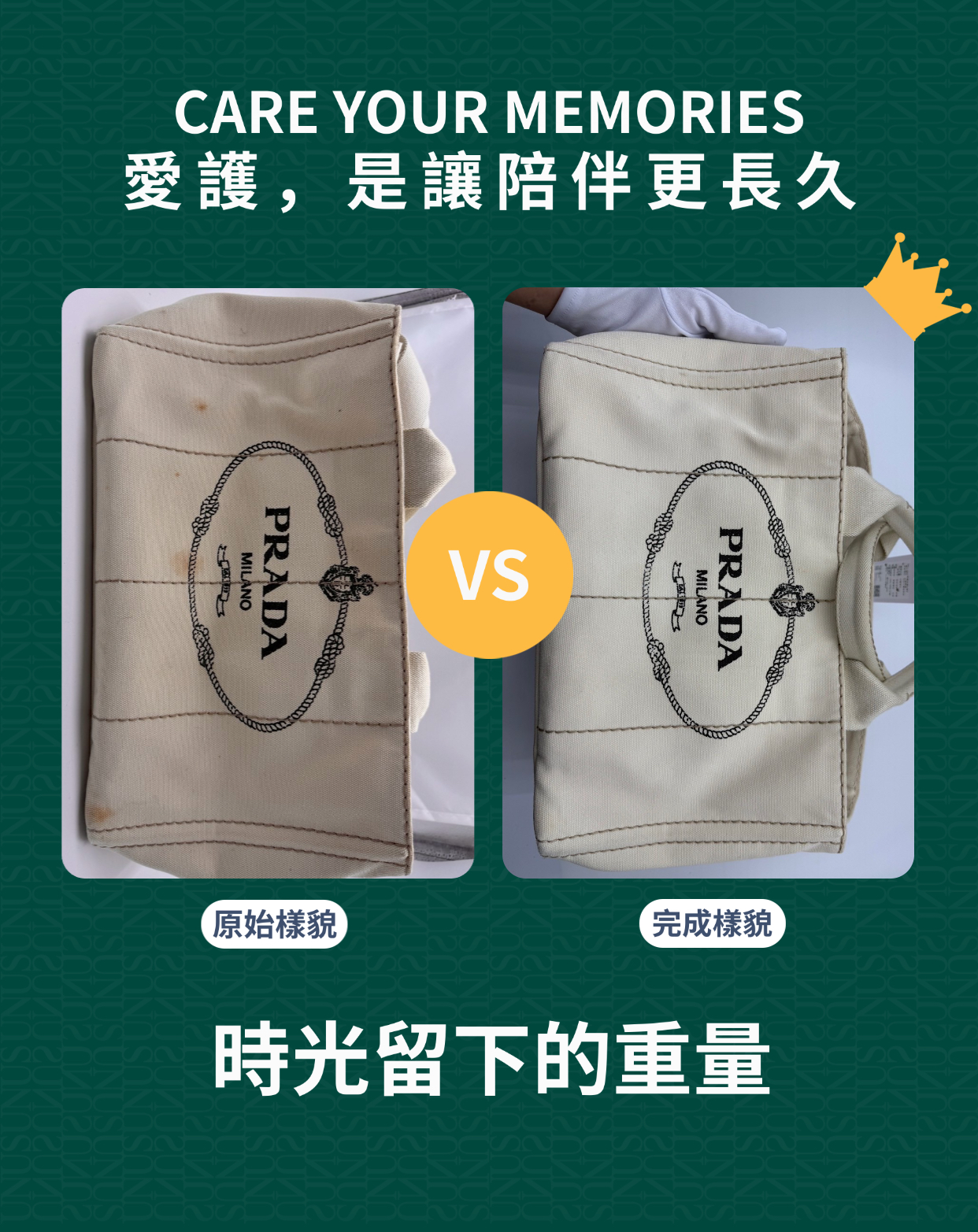 原本髒的要命想要丟棄(油垢、污垢、發霉),但想想還是送洗,送去一度還被店員說發霉的地方有可能洗不太起來要我有心理準備,我說ok,今日去取件小姐說還沒有好,還在加強處理中可能會晚一點,好了會幫我送過去,當我收到包包時洗的超乾淨,讓我覺得送洗是對的,也很感謝店家的服務值得五顆星👍👍👍👍